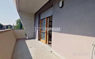 L'appartamento, sito in un contesto condominiale moderno del 2002, si trova al primo piano con ascensore ed è così disposto: ingresso su luminosa zona giorno, caratterizzata da un guardaroba costruito tramite un'armadiatura su misura, con accesso diretto al terrazzo esposto a Sud. Il living si unisce in modo armonioso alla cucina, la quale si presta ad essere funzionale e pratica.