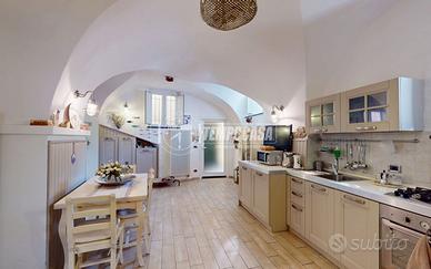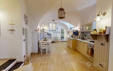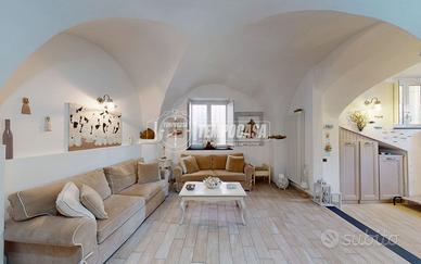 L'appartamento è stato attentamente rinnovato, mantenendo il fascino della tradizione con particolari in pietra che richiamano l'architettura delle case dell'epoca. All'interno, un ampio soggiorno living accoglie gli ospiti, creando un ambiente ideale per il relax e la socializzazione. Completano la proprietà due camere da letto, un primo bagno con antibagno e lavanderia, e un secondo bagno privato nella camera matrimoniale, dotato di vasca.