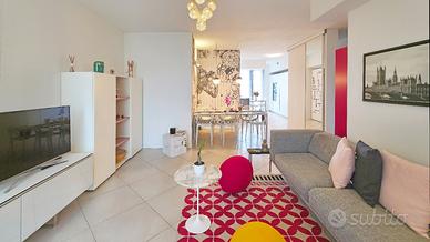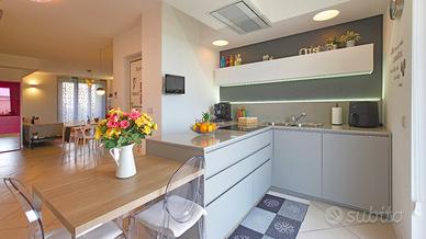 L'immobile di ampia metratura, oggetto di uno studio sapiente degli spazi, presenta una luminosa zona giorno open-space ma allo stesso tempo con zone ben divise tra cucina, pranzo e soggiorno.