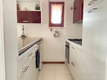 L'appartamento si compone di una camera matrimoniale luminosa, una seconda camera con letto a castello, un bagno finestrato dal design funzionale e una spaziosa zona living con cucina abitabile.