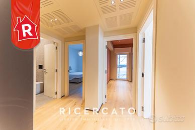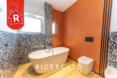 La soluzione è stata anche oggetto di una ristrutturazione interna totale, curata nei minimi dettagli da un architetto, con una progettazione attenta sia all'estetica sia alla funzionalità degli spazi. Ogni ambiente è caratterizzato da elementi di design contemporaneo e materiali di pregio, a partire dal parquet che corre omogeneo in tutta la casa, conferendo calore ed eleganza.
