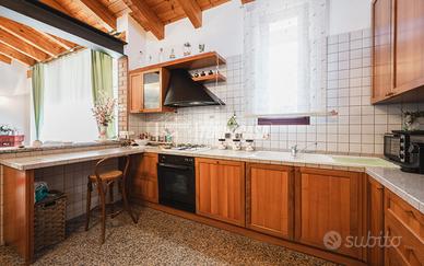 Completa la proprietà al piano seminterrato, collegato all'appartamento da comoda scala interna, un'ampia autorimessa di 38 mq con annessi due locali ad utilizzo lavanderia e cantina.