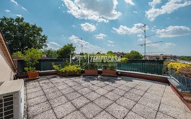 Tramite una comoda scala interna, l'ultimo piano gode di un terzo locale da utilizzare sulla base di differenti esigenze (terza camera, studio, zona relax) da cui si ha accesso a un prezioso terrazzo di 30 mq (in parte loggiato, e in parte aperto) con vista libera su tutte le arie. Ideale per chi è alla ricerca di uno spazio esterno da poter condividere con amici e parenti.