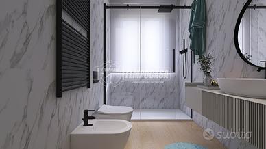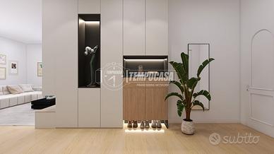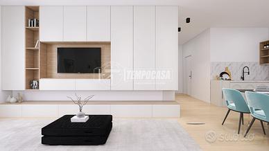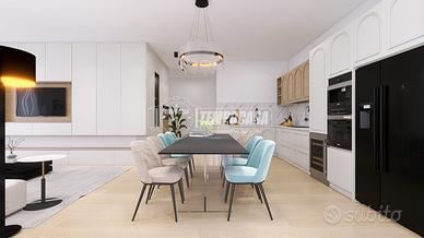 La zona giorno si apre su un ingresso accogliente, una cucina abitabile con accesso al balcone e un soggiorno spazioso impreziosito da doppio balcone, perfetto per garantire luce naturale durante tutto il giorno.