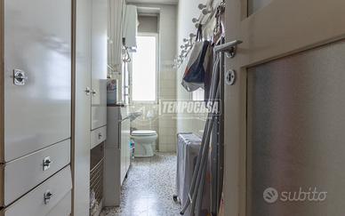 L'ingresso con disimpegno conduce alla zona giorno composta da un soggiorno doppio con balcone affacciato su via Battistotti Sassi, ideale per chi desidera ambienti ariosi e versatili. La zona notte offre due camere matrimoniali, una cameretta e due bagni finestrati.
