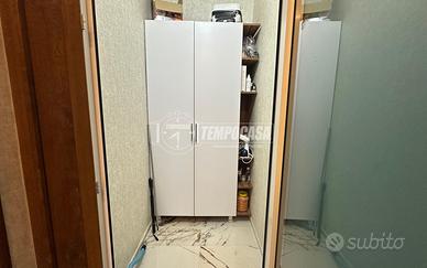 Ingresso su disimpegno, camera matrimoniale, bagno FINESTRATO con doccia in cristallo con al suo interno una lavatrice /asciugatrice compresa, SPAZIOSA seconda camera, AMPIO soggiorno, Cucina con angolo cottura completamente nuovo così come il resto del mobilio all'interno dell'immobile. Completa la proprietà un utile ripostiglio e soffitta. L'immobile ha infissi completamente nuovi oltre a un sistema di condizionamento diffuso in tutta la casa,