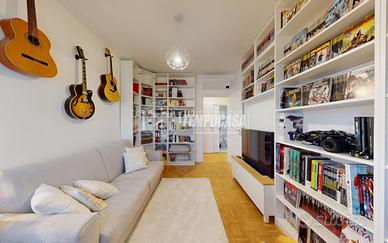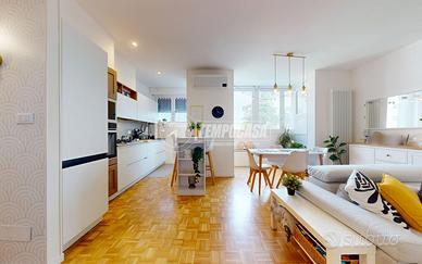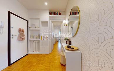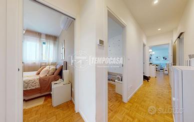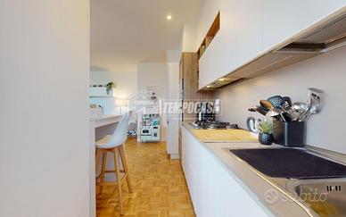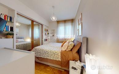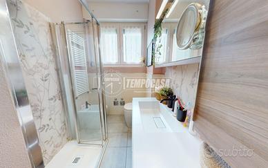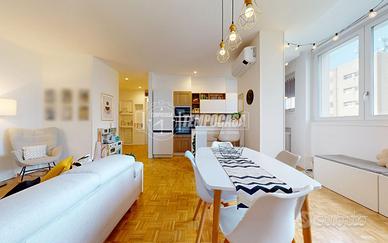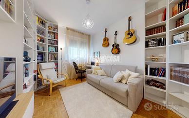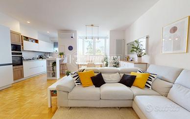 A Bologna, più precisamente nel quartiere Zanardi in via Vasco De Gama, zona centrale e ottimamente servita, proponiamo in vendita APPARTAMENTO COMPLETAMENTE RISTRUTTURATO di 104 mq, situato al QUARTO PIANO SERVITO DA ASCENSORE, all'interno di una palazzina edificata nel 1974 completamente immersa nel verde del giardino Carlo Broschi Farinelli (Casa Gialla) e recentemente riqualificata con cappotto termico realizzato nel 2024. L'appartamento si compone come segue: - ingresso di 5,4 mq con pratico ripostiglio - ampia e luminosa zona living con angolo cottura di 32,1 mq - disimpegno notte di 6,6 mq - due bagni, entrambi con box doccia: il primo di 2 mq con sanitari sospesi, il secondo finestrato di 4,8 mq - tre camere da letto matrimoniali di 11 mq, 11,2 mq e 13,1 mq, quest'ultima con cabina armadio di 4,4 mq Completano la proprietà, al piano primo sottostrada, una spaziosa cantina di 19 mq e un garage di 13 mq con larghezza di ingresso massima di 2,11 m. L'immobile è stato oggetto di una completa ristrutturazione nel 2023, con una progettazione attenta degli spazi interni per garantire funzionalità e comfort abitativo. Tra le principali finiture e dotazioni troviamo porta d'ingresso blindata, controsoffitto con faretti, pavimentazione in parquet in tutti gli ambienti (ad eccezione dei bagni in gres porcellanato), porte interne in legno laccato bianco, infissi in pvc con triplo vetro completi di zanzariere e tapparelle elettriche, impianto di climatizzazione con pompa di calore (motore incassato in nicchia in cartongesso con sfogo esterno, che funge da ulteriore ripostiglio), riscaldamento centralizzato con termoarredi in alluminio e certificazioni degli impianti elettrico e idrico. La palazzina dispone inoltre di posti auto condominiali non assegnati, regolati da accesso con cancelletto elettrico ed è circondata da un