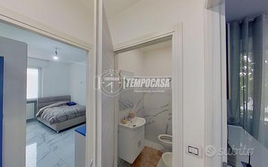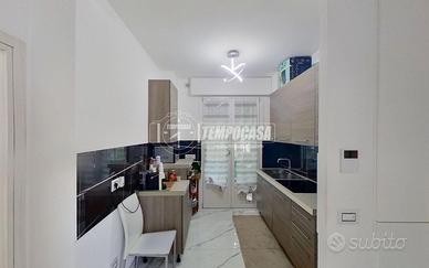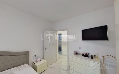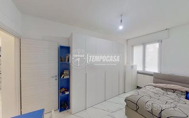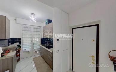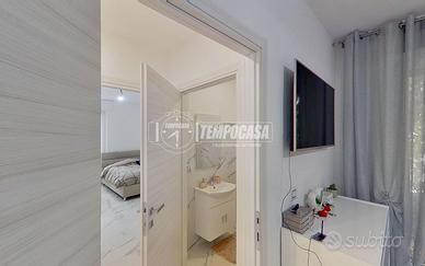 L'appartamento si sviluppa su una pianta ben distribuita, caratterizzata da spazi ampi, finiture moderne e un'elegante uniformità stilistica. L'ingresso conduce a una luminosa zona giorno composta da soggiorno e cucina semi-abitabile, entrambi affacciati su due balconcini con affaccio interno, riservato e silenzioso, entrambi dotati di attacco acqua, ideali per creare piccoli spazi verdi o zone lavanderia.