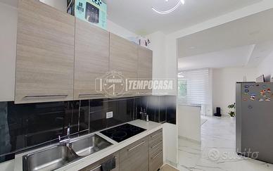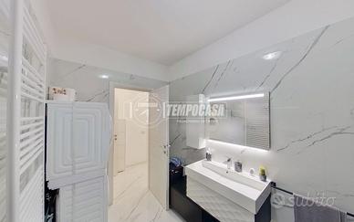 L'intervento di ristrutturazione ha interessato ogni aspetto dell'immobile: sono stati rifatti completamente gli impianti elettrici e idraulici, è stata installata una caldaia a condensazione di ultima generazione e sono stati scelti materiali di alta qualità per le finiture. La pavimentazione è in gres porcellanato effetto marmo, posato in modo uniforme in tutti gli ambienti, per un risultato estetico elegante e contemporaneo. Gli infissi sono in PVC con vetro triplo a taglio termico, dotati di sistema scorrevole e tapparelle elettriche, a garanzia di un eccellente isolamento acustico e termico.