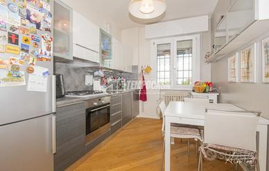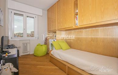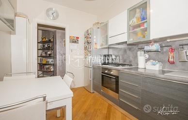 Ingresso su zona giorno che si compone di un luminoso soggiorno con uscita su un comodo balcone, collegato anche alla cucina abitabile da una finestra, disimpegno notte con 3 camere da letto, di cui due matrimoniali e una singola, due bagni finestrati.