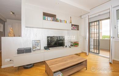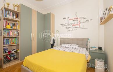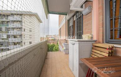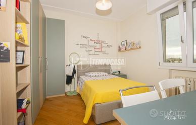 Ingresso su zona giorno che si compone di un luminoso soggiorno con uscita su un comodo balcone, collegato anche alla cucina abitabile da una finestra, disimpegno notte con 3 camere da letto, di cui due matrimoniali e una singola, due bagni finestrati.