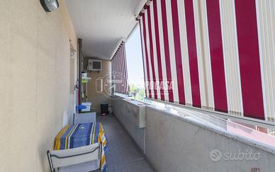 L'immobile ha una metratura complessiva di 90mq ed è così composto: Ingresso su ampia zona giorno di quasi 30mq con accesso al terrazzo, cucina abitabile di 10mq completamente ristrutturata, proseguendo, la zona notte è comodamente divisa da una porta che accede al disimpegno, nel quale troviamo l'accesso al primo bagno completo con doccia e aspirazione forzata. Il secondo bagno è dotato di vasca e finestrato, le due camere sono entrambe matrimoniali e una delle due ha accesso al terrazzo abitabile.