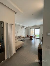 Vendesi appartamento parzialmente arredato al secondo piano in piccolo condominio signorile di sole 8 unità abitative con n.1 box per 2 auto. L'immobile è di circa 110 mq, ampio e luminoso. Zona giorno: salone e cucina abitabile e arredata(diversi mobili dispensa, piano cottura con 5 fuochi, frigo,lavastoviglie, forno, microonde) da entrambe si accede al balcone. Sul balcone sono montate tende da sole automatizzate. Corridoio: secondo bagno arredato con doccia e vasca. Zona notte: camera matrimoniale con bagno arredato con doccia, cameretta e cabina armadio. Dalle 2 camere da letto si accede al secondo balcone/terrazzo con angolo lavanderia. Sistema di riscaldamento autonomo con controllo da app. Sistema di sicurezza antiintrusione con controllo da app. richiesta 380000 trattabili - NO contatti da agenzia