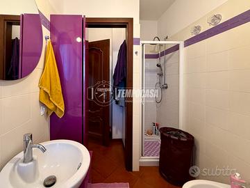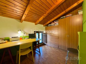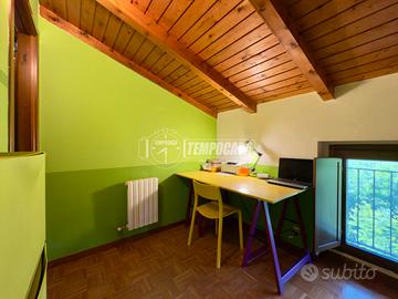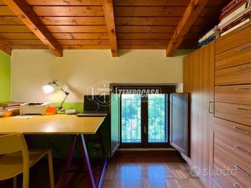 Salendo al secondo piano, la zona notte accoglie due camere da letto una delle quali con affaccio sul balcone, offrendo privacy e comfort. Troviamo inoltre una terza stanza, attualmente adibita a studio, perfetta per chi lavora da casa o necessita di uno spazio dedicato ai propri hobby, un secondo bagno finestrato con vasca da bagno serve questo piano.