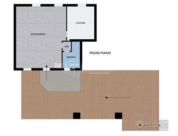 Al primo piano, l'ingresso si apre sul confortevole soggiorno, perfetto per il relax e l'intrattenimento, adiacente ad esso troviamo la cucina abitabile ideale per condividere piacevoli momenti conviviali. Completa il piano un pratico bagno di servizio con doccia.