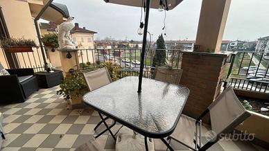 Rif:018BE (125285261) - Proponiamo pentalocale di 206 mq situato al secondo piano di un condominio del 2004 a Rottofreno. La sua disposizione su due livelli conferisce una chiara divisione tra le aree funzionali, ottimizzando l'uso dello spazio per nuclei familiari numerosi. L'accesso al piano è garantito dall'ascensore condominiale. Il piano d'ingresso accoglie un ampio soggiorno collegato a un balcone. La cucina, mantenuta separata, dispone di un balconcino aggiuntivo. Su questo livello sono già presenti una camera matrimoniale, una camera doppia, un bagno di servizio e un bagno principale finestrato con doccia. Questa configurazione consente la gestione completa della vita quotidiana anche sul solo piano inferiore. Il piano superiore è dedicato alla massima privacy. Il disimpegno distribuisce le due restanti camere matrimoniali. La camera principale include un'area aggiuntiva pensata come cabina armadio. Il piano è servito da un ampio bagno finestrato che integra un box doccia e un pratico vano per la zona lavanderia, garantendo ordine e funzionalità. Le dotazioni includono un sistema di climatizzazione multizona (4 split) e la proprietà è completata da un essenziale garage doppio e da una cantina. La posizione fronte parco e la prossimità a scuole e servizi locali (bar, asilo) confermano il valore e la praticità dell'investimento. - Classe: D - IPE: 113.00 kWh/mq anno