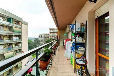 Rif:(127278819) - Scopri questo splendido appartamento quadrilocale situato al sesto piano di una palazzina ristrutturata, perfetto per chi cerca un ambiente luminoso e accogliente. Con una superficie di 98 m² commerciali, l'appartamento offre un soggiorno con cucina a vista, ideale per momenti di convivialità e relax. Le due camere da letto, insieme a una cameretta, offrono spazio sufficiente per famiglie. Il bagno s è funzionale e ben distribuito, mentre gli armadi a muro ottimizzano gli spazi. Il balcone perimetrale regala una vista panoramica e un'ottima esposizione al sole, rendendo ogni mattina speciale. Inoltre, il posto auto coperto è un grande valore aggiunto, garantendo comodità e sicurezza. L'appartamento, in buono stato e con riscaldamento centralizzato, è dotato di aria condizionata per affrontare le calde giornate estive. Situato in una zona ben servita, con facile accesso ai mezzi pubblici e ai servizi, questo immobile rappresenta un'opportunità imperdibile. Non perdere l'occasione di visitarlo! Classe energetica F, consumo 103,91 kWh/m² anno. - Classe: F - IPE: 175.00 kWh/mq anno