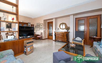 L'immobile si presenta in un buono stato conservativo. Apprezzerete sicuramente gli spazi interni: la zona living con un elegante pavimentazione in marmo, è doppia e luminosa, servita da una confortevole balconata vivibile dove trascorrere le calde serate estive. La cucina è abitabile, accompagnata da un secondo sfogo esterno con un gradevole affaccio interno. Un disimpegno separa la zona notte composta da tre stanze, una adibita attualmente a studio ma utilizzabile come terza camera da letto e le altre due sono altrettanto servite di balcone. Sono presenti due bagni finestrati, dotati di tutti i sanitari e per concludere un ripostiglio posizionato nel corridoio. In tutti gli ambienti troviamo infissi in PVC doppio-vetro. A completare la soluzione una cantina e un BOX con serranda motorizzata di 21 mq posizionati al piano -1, comodamente accessibile con l'ascensore. Da sottolineare che le pertinenze (cantina e box) sono direttamente collegate fra di loro, offrendo un'ulteriore comodità a chi acquisterà l'immobile.