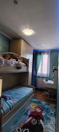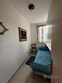 La soluzione si compone di ingresso nel soggiorno con angolo cottura, un balcone coperto (tenda nuova) che da al giardino condominiale, studio/cameretta affianco al salotto e tramite una porta scivolo, si entra nella zona notte, composta da 2 camere: 1 singola e 1 matrimoniale molto ampia e un bagno grande con vasca e box doccia.
