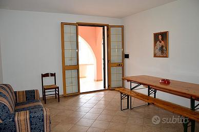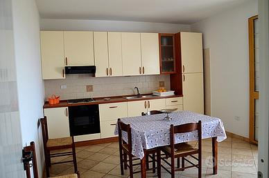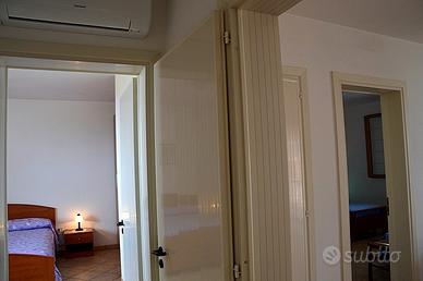 Gli interni sono pensati per la funzionalità: un'ampia e luminosa zona giorno funge da cuore della casa, collegando tutte le stanze. La cucina, completa di tutto il necessario, e una delle due camere da letto hanno accesso diretto agli spazi esterni. La zona notte comprende due camere e due bagni, uno dei quali di servizio, garantendo praticità per la vita quotidiana.