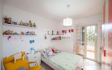 L'immobile è composto da ingresso su soggiorno, cucina abitabile, tre camere da letto, doppi servizi e due balconi , uno dei quali ruota per quasi tutto il perimetro dell'appartamento.