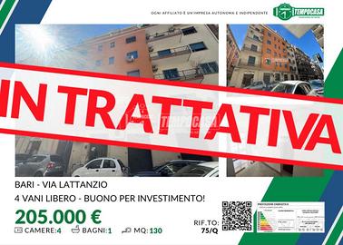 La Tempocasa di Bari Carrassi - San Pasquale propone in vendita, in via LATTANZIO un comodo QUADRIVANI di 130 mq.