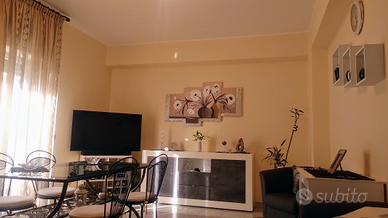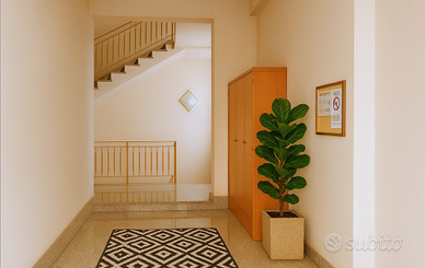 Ingresso, soggiorno, cucina abitabile, due bagni, cameretta, matrimoniale e ripostiglio.
