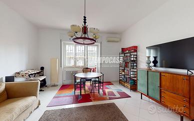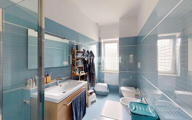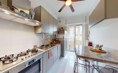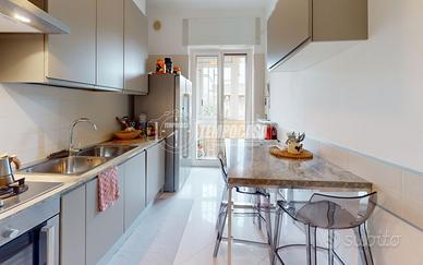L'appartamento gode di doppia esposizione, con due affacci balconati entrambi rivolti sul cortile interno dello stabile.