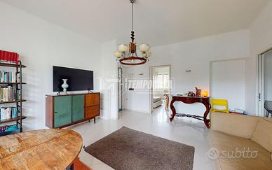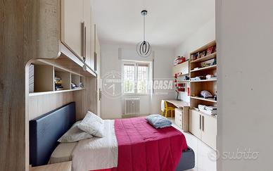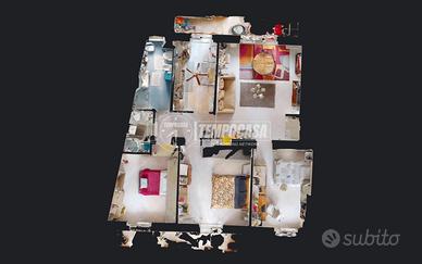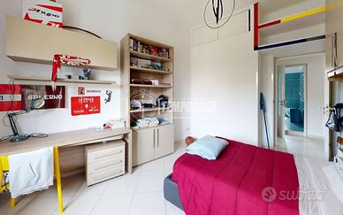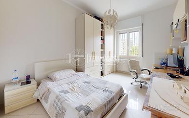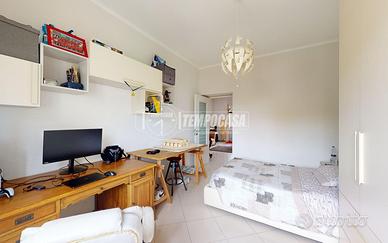 L'appartamento, con una superficie complessiva di 124 mq, si presenta anch'esso in ottimo stato ed è così disposto: entrando veniamo subito accolti da un ampio soggiorno, che ci conduce, sulla sinistra, a TRE camere da letto.