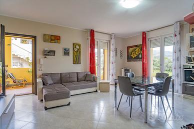 OIKADE.IT Consulenze Immobiliari propone in vendita a Sinnai, precisamente in via Corsica, un appartamento di tipologia quadrivano. L'immobile di circa 90 mq è sito al primo piano di un palazzotto composto da sole due unità abitative. Dall'ingresso principale accediamo direttamente all'open space soggiorno con angolo cottura, collegato a due ampi balconi che garantiscono luce naturale in tutte le ore della giornata, ideali per trascorrere piacevoli momenti di relax. Un funzionale disimpegno ci permette di accedere alla zona notte, composta da tre camere da letto: una matrimoniale e due singole: tutte sono dotate di uscita sugli spazi esterni. La proprietà dispone di due bagni, uno cieco e uno finestrato con accesso al balcone per maggiore praticità e comfort. In ogni ambiente sono presenti gli split inverter per aria condizionata e riscaldamento. Completa la proprietà un comodissimo garage di ben 40 mq. L'immobile viene venduto completamente arredato. Soluzione ideale per famiglie che cercano funzionalità, comfort e spazi ben distribuiti . Contattaci per maggiori informazioni o per fissare il tuo appuntamento. Rif. 1640 A