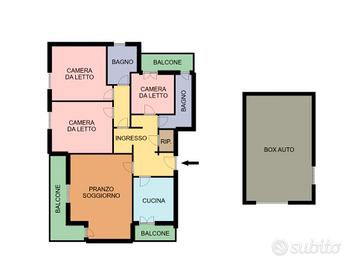 NUORO - In Via Donatori di Sangue, zona residenziale panoramica e ben costruita, ampio appartamento quadrivano con doppio bagno e box auto. Tramite delle scale comuni o con comodo ascensore, si raggiunge il piano terzo.Varcata la soglia, si viene accolti da un ampio ingresso che collega tutti gli ambienti della casa. Una cucina abitabile con parete cottura affaccia su un balcone privato: adiacente a questo ambiente trova spazio un luminoso pranzo soggiorno con doppia finestratura e balcone panoramico. Nell'ala opposta della casa si sviluppa la zona notte, formata da tre camere da letto, di cui una con balcone, e due bagni finestrati con doccia. Al piano terra è presente un ampio box auto con comodo accesso. L'immobile si presenta in buono stato manutentivo, è provvisto di riscaldamento autonomo a radiatori e viene venduto con arredi.