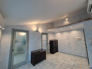 ingresso-soggiorno con soppalco, cucina, disimpegno, camera matrimoniale, bagno con doccia, ripostiglio soppalcato, posto auto. Doppia esposizione solare, finiture superiori con ceramica sarda, porta blindata, infissi in legno e vetro camera, tapparelle motorizzate, satellitare, impianto di allarme, cassetta di sicurezza, pompe di calore caldo/freddo, video citofono.