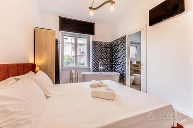 appartamento ristrutturato composto da 4 camere matrimoniali con ognuno il suo bagno privato .ampia cucina con balcone . lavanderia . cantina . posto auto moto.si valuta l intero affitto. oppure la singola camera.