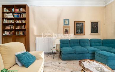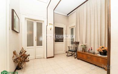 L'appartamento accoglie con un ingresso elegante, che introduce in un ampio soggiorno luminoso, caratterizzato da una doppia esposizione e tre grandi finestre che donano luce e respiro all'ambiente. Qui, la pavimentazione in marmo originale conferisce un tocco di esclusività e racconta il fascino intramontabile delle case milanesi d'epoca.