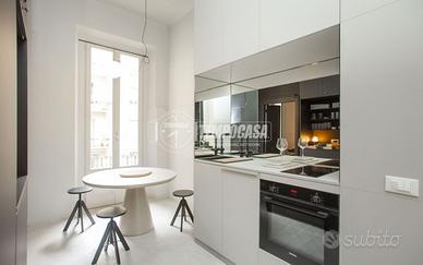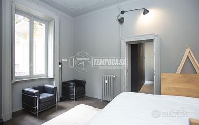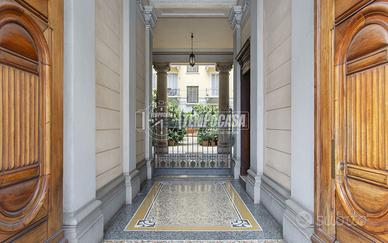 Milano, via Luigi Settembrini, 45. Proponiamo in vendita un esclusivo appartamento dallo stile moderno e contemporaneo con influenze minimaliste e classiche, in un contesto d'epoca dei primi anni del 900. L'ingresso della casa conduce ad una grande zona living, luminosa ed accogliente, arredata con elementi di design e valorizzata da soffitti alti oltre 3.50 m e finiture originali, come pavimento in resina, parquet originale scurito. La cucina e il salone sono separati ma ben integrati. La cucina presenta linee pulite e moderne, con mobili su misura che sfruttano tutto lo spazio, anche in altezza, e troviamo la porta finestra che conduce al balcone donando molta luce. Il living è lo spazio ideale per la convivialità, con due grandi divani neri che contrastano con le pareti chiare ma si abbino al parquet e alle porte originali, anch'esse scurite. Il corridoio che conduce alla zona notte è stato ottimizzato con comode armadiature a tutta altezza. La camera matrimoniale si presenta minimale con un grande letto di design e stucchi originali restaurati sul soffitto. Il bagno è coerente con lo stile della casa, completo e finestrato. Tra i punti di forza, oltre alla recente e accurata ristrutturazione, l'esposizione sul gradevole cortile dello stabile, che garantisce luce e tranquillità. La zona è di forte valore commerciale: via Luigi Settembrini è vicinissima al centro storico, Corso Buenos Aires, Giardini Indro Montanelli, Piazza della Repubblica; a meno di 200 metri da ogni linea metropolitana presente sul territorio Milanese. Ben collegato con ogni servizio, mezzo, negozio e necessità. Disponibili per ulteriori informazioni e visite. Questa descrizione ha valore puramente indicativo e non costituisce elemento contrattuale. - Classe: D - IPE: 755.00 kWh/mq anno