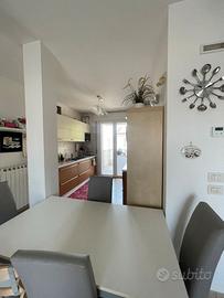 abitativa è posta al secondo e ultimo piano di una palazzina del 2007 di soltanto sei unità ed è composta da entrata su un ampio e luminoso soggiorno/cucina dotata di grande terrazza di circa 30 mq, ideale per godere di pranzi all'aperto e momenti di relax e un ulteriore poggiolo, un disimpegno, un ripostiglio, due camere da letto, una delle quali con accesso diretto alla terrazza e doppi servizi. Le finestre e le tapparelle sono nuove, così come le zanzariere su tutte le aperture, assicurando un ambiente fresco e protetto. Il riscaldamento è efficiente grazie all'impianto fotovoltaico con batterie di accumulo da 25 kW e alla caldaia a condensazione di recente installazione.