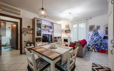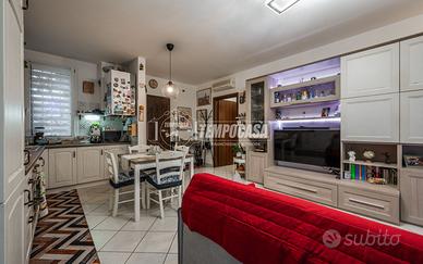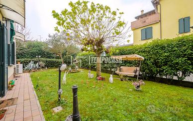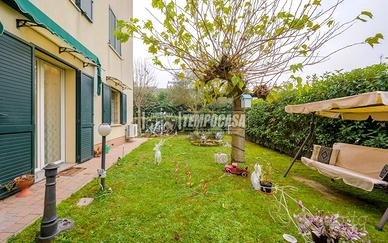 Trattasi di un appartamento posto totalmente al piano terra, con ampio Giardino privato accessibile dalla zona giorno attraverso porta finestra. Internamente la soluzione è così composta: ingresso su Soggiorno con ang.cottura (totali 27,3 Mq), Camera singola (12 Mq), Camera Matrimoniale (15,1 Mq), Disimpegno notte (1,3 Mq), Ripostiglio (0,9 Mq), Bagno con doccia (4,9 Mq). Completa la proprietà un piccolo vano accessorio e posto auto scoperto ad uso esclusivo.
