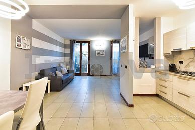 L'appartamento, inserito in uno stabile di recente realizzazione con cappotto termico, di sole 3 unità abitative è privo di spese condominiali ed è cosi composto: al piano terra troviamo ampia zona giorno con angolo cottura con accesso diretto al patio esterno di proprietà, ripostiglio/lavanderia e bagno; un comoda scala interna ci conduce alla zona notte dove troviamo una camera matrimoniale di ampia metratura arricchita da terrazzino, bagno padronale ed infine un comodo ripostiglio dove poter recuperare cabina/stanza armadio.