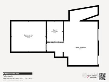 Ingresso Open-Space Soggiorno/Cucina (20 m²); Disimpegno notte (4,5 m²); Bagno (6,18 m²) con portafinestra per l'accesso al terrazzo; Camera Matrimoniale (14 m²) con porta finestra.