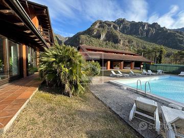 La proprietà si distingue per gli spazi ampi e luminosi, le travi a vista e una distribuzione funzionale degli ambienti, all'esterno giardino e posti auto sono elementi che valorizzano ulteriormente la posizione privilegiata a soli 100 metri dal lago.