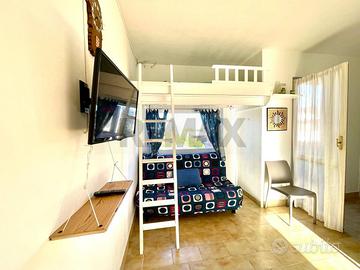 dal corridoio dingresso sulla sinistra un bagno accogliente, sulla destra sempre nel corridoio troviamo la camera matrimoniale, riservata e ben illuminata. Proseguendo si accede alla zona giorno, composta da soggiorno con divano letto e da una cucina funzionale, ben integrata nellambiente.