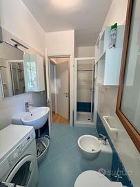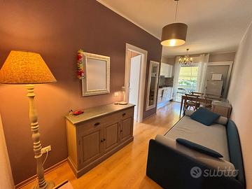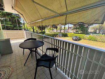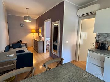 Proponiamo in vendita splendido bilocale ristrutturato in villaggio con piscina. L'immobile è composto da una luminosa camera da letto matrimoniale, un ampio soggiorno cucina con divano letto a castello e un bagno finestrato con box doccia. La struttura è dotata inoltre di climatizzatore, lavatrice, lavastoviglie e un ampio terrazzo ad angolo esposto a SUD-OVEST. Serramenti in PVC scorrevoli e porte interne nuove. Posto auto condominiale scoperto.