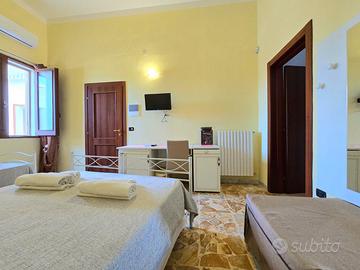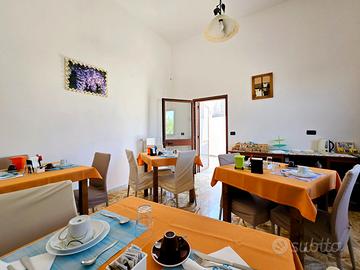 Secondo blocco: Al primo piano, si estende un bed and breakfast composto da ben cinque camere ognuna con il suo carattere distintivo, ti accolgono con un'eleganza senza tempo grazie alla presenza delle tipiche volte a stella e a botte. Climatizzate, con frigo bar, televisore e in ognuna un bagno privato, completo di sanitari con box doccia. Di cui due sono matrimoniali, mentre il restante triple/quadruple.