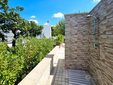 Primo blocco: Entrando nelle tre abitazioni, il primo un bilocale, incontrerai un ampio soggiorno con angolo cottura, tavolo da pranzo e divano letto. Proseguendo una camera da letto matrimoniale e bagno completo di sanitari con box doccia. Mentre le altre due simili tra loro, comodi monolocali dove la zona giorno e la zona notte sono in un unico ambiente, entrambe con lucernario sul soffitto che donano grande luminosità alla stanza, infine un bagno completo di sanitari e box doccia completo di finestra.