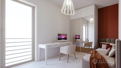 Le tipologie B5 e B8, situate rispettivamente al primo e al secondo piano, sono soluzioni identiche che si differenziano per piano ed esposizione, con conseguente variazione di prezzo. Entrambe offrono un soggiorno di circa 27 mq, tre camere da letto, un bagno e un balcone di pertinenza esclusiva di circa 12 mq commerciali.