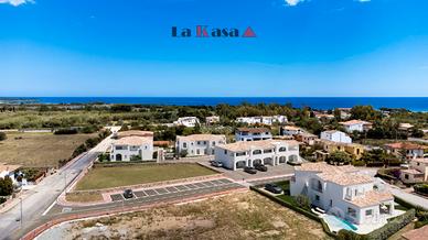 I vialetti pedonali, curati in ogni dettaglio, uniscono le abitazioni con grazia e conducono verso il mare, come se ogni passo fosse già parte della vacanza.