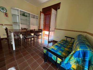 Appartamento situato al primo piano a 500 metri circa dalle bellissime spiagge dai fondali cristallini. L'abitazione dispone di una sala da pranzo con divano letto, cucinino, camera con letto matrimoniale, camera con letto a castello e bagno. Accessori: stoviglie, lavatrice, ventilatori a soffitto e condizionatore, culla per bimbi da campeggio , ferro da stiro. Nelle vicinanze parco giochi, farmacia, pizzeria.