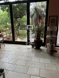 Poggione Via Senese in Borgo ristrutturato in vecchia cascina stile rustico travi e mezzane villetta indipendente solo piano terra 5 v 120 3 c 2 bagni più portico chiuso a vetri 30 m giardino fronte retro garage corte condominiale posto auto ottime rifiniture parquet.€ 495,000.00