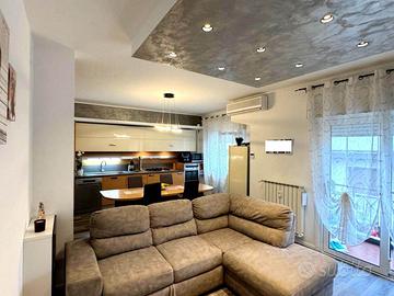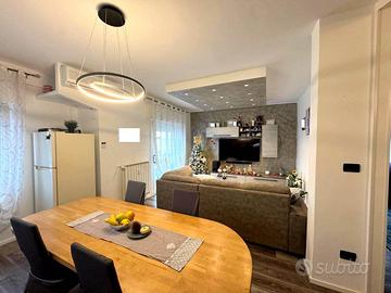 INGRESSO AMPIO, ZONA GIORNO OPEN SPACE, CON AREA RELAX E CUCINA A VISTA MODERNA, CAMERA MATRIMONIALE, CAMERA SIGNOLA, BAGNO NUOVO, RIPOSTIGLIO/LAVANDERIA. IMPIANTI, PAVIMENTI, INFISSI E BAGNO RIFATTI. CLIMA. AL PIANO TERRA AMPIO GARAGE OTTIMO ANCHE PER SUV.