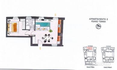 Entrando ci accoglie un ampio soggiorno di 28mq con cucina a vista ,un disimpegno ci separa dalla zona notte dove troviamo la camera matrimoniale, e il bagno di servizio finestrato con doccia.